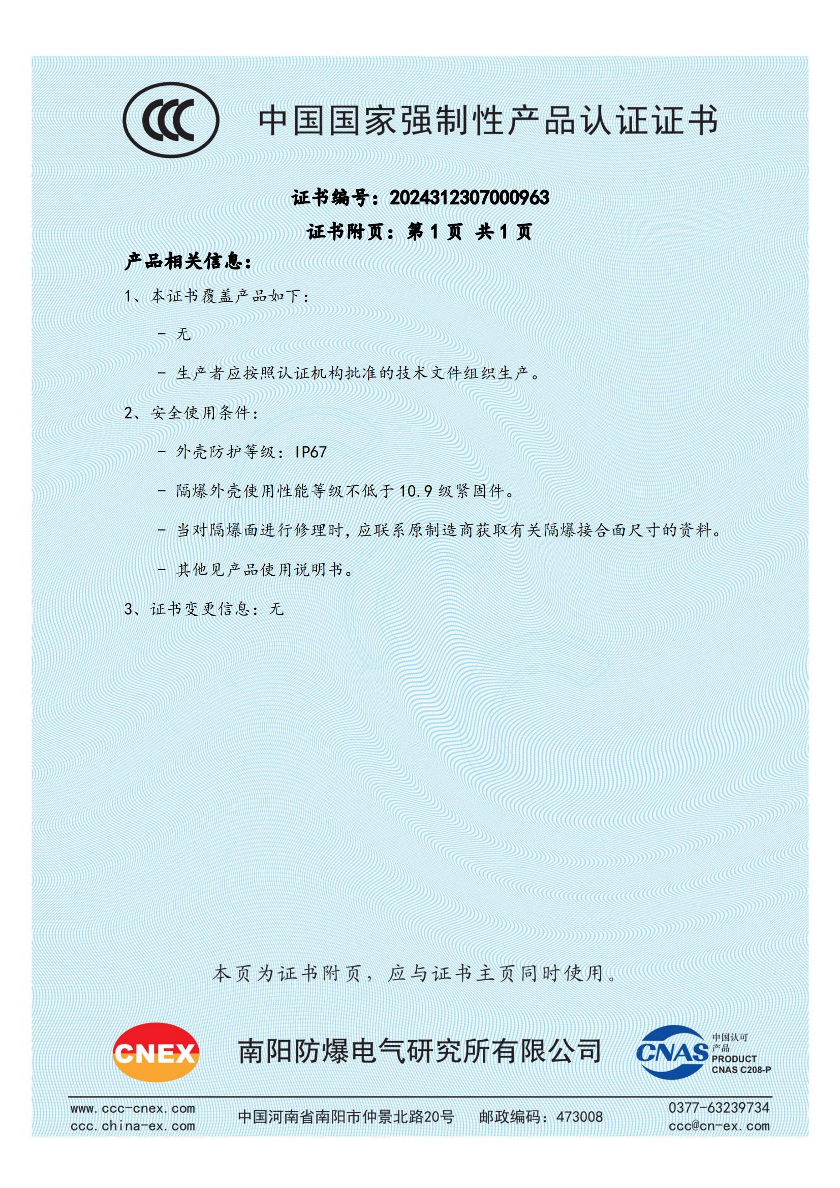 CMExC24.0887 DTEBL50 II類(lèi) 防爆合格證 有效期至2029年6月9日