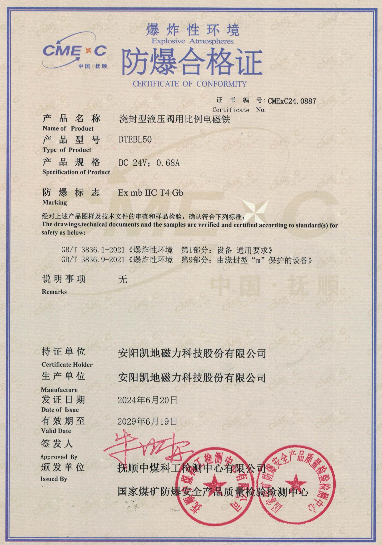 2024312307000963 礦用隔爆型液壓閥用比例電磁鐵CCC證書(shū) 有效期至2029年11月14日_01